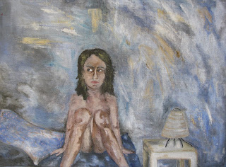 This was the first in the series of naked women against colorful walls. That Ikea lampshade and table makes me happy....